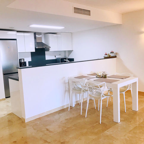 Det er også en stor terrasse med fantastisk havsutsikt. Tilhørende fellesområde er det ikke mindre en 3 svømmebasseng (både for store og små) og vakre grøntområder. I dette område kan man gå kilometer lange turer langs sjøen, med gode muligheter for å ta pauser med «vannhull» som ligger underveis. Det er også verdt å nevne at både Torrevieja by og kjøpesenteret i La Zenia ligger under 10 minutter fra leiligheten. Her er det høy trivselsfaktor og gode muligheter til å leie en leilighet man ønsker å komme tilbake til!